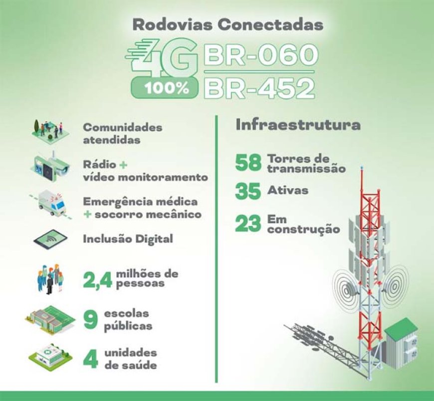 Rodovias mais seguras, confortáveis, eficientes e 100% com cobertura de telefonia móvel, dados e voz. É o compromisso da Rota Verde Goiás na gestão de 426,2 quilômetros da BR-060 e BR-452, de Goiânia a Itumbiara, passando por Rio Verde. Como parte deste compromisso, a concessionária firmou uma parceria estratégica com a TIM para, já a partir do final de outubro, ampliar a conectividade em todo o trecho rodoviário.